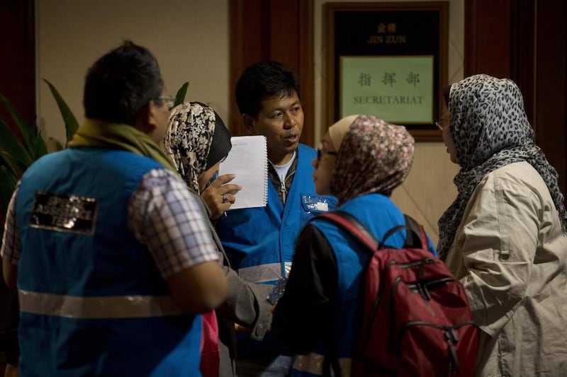 Malaysian officials met in Beijing with several hundred Chinese relatives of passengers to explain the search and investigation, and to relay the last transmission that Malaysian air traffic controllers received before the plane entered Vietnamese airspace, according to a participant in the meeting.