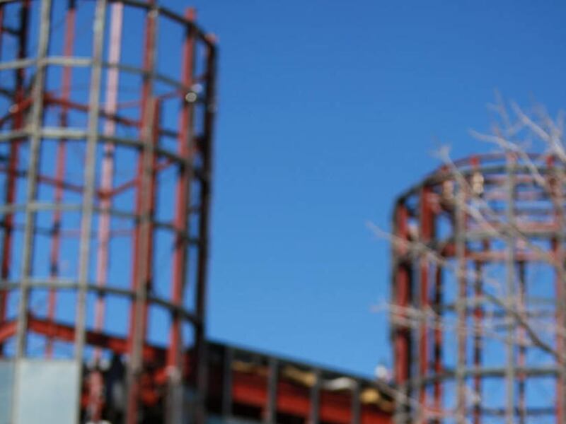 The glass towers will be replaced with large windows for the school's entrance and an atrium. The building's interior is being remodeled to house a gymnasium, an auditorium, science labs and classrooms. The construction is expected to be complete early July.