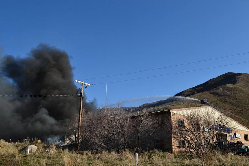 A massive column of black smoke could be seen from the other end of the valley where I-84 emerges from Weber Canyon. The Polaris Wilkinson construction shop is a large steel building housing a storage area as well as a workshop and ATV repair facility.