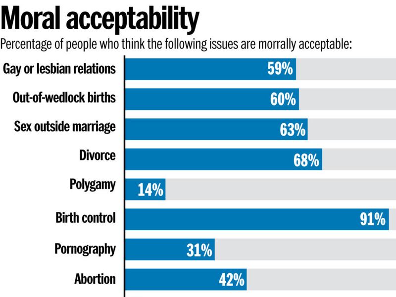 American social taboos on many issues — especially issues of personal sexual choice — have been changing over time, but views on infidelity have not budged. It has been consistently frowned upon by the masses across decades and demographics. Adultery is less popular than cloning humans, polygamy, suicide and teenagers having sex — all of which were also close to the bottom of Gallup's list.