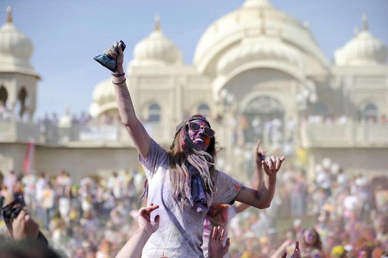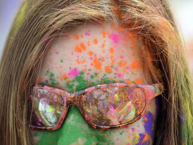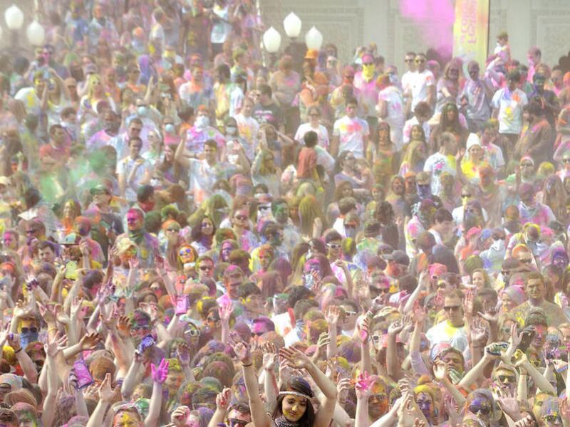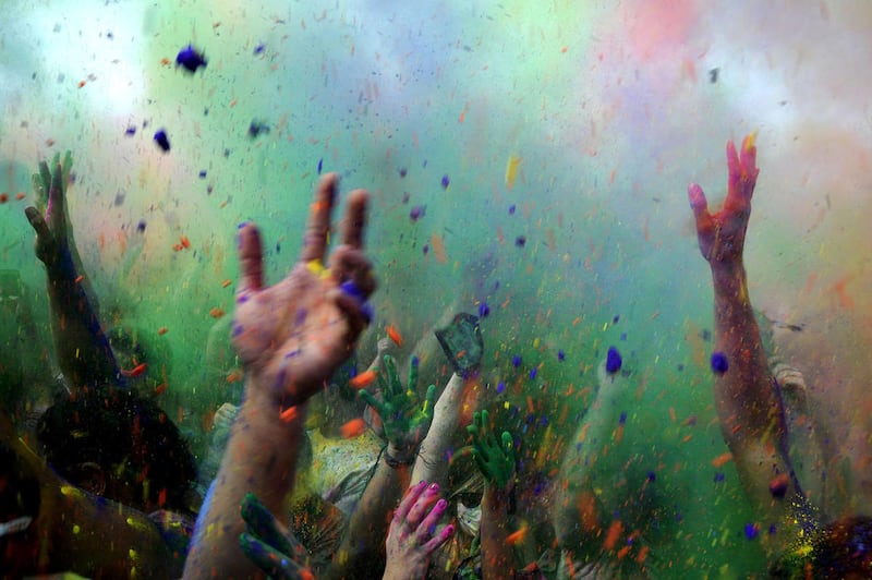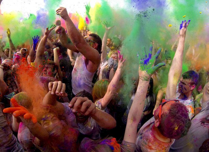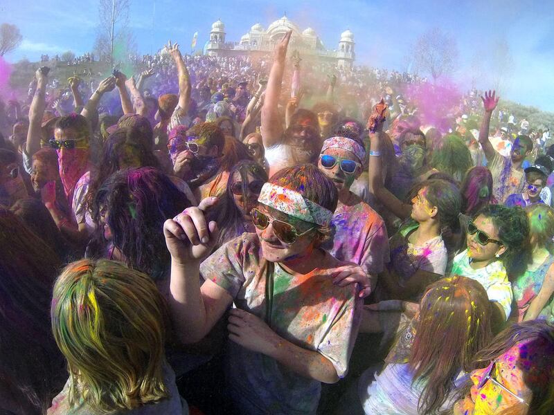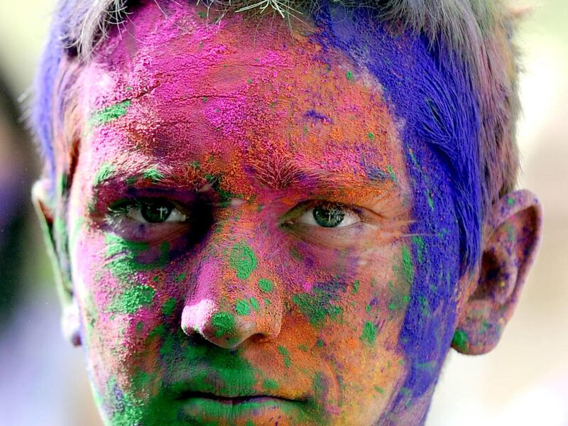 Each year, participants throw dyed corn starch to signify the arrival of spring, which for this faith and others is a time to forgive and renew.
