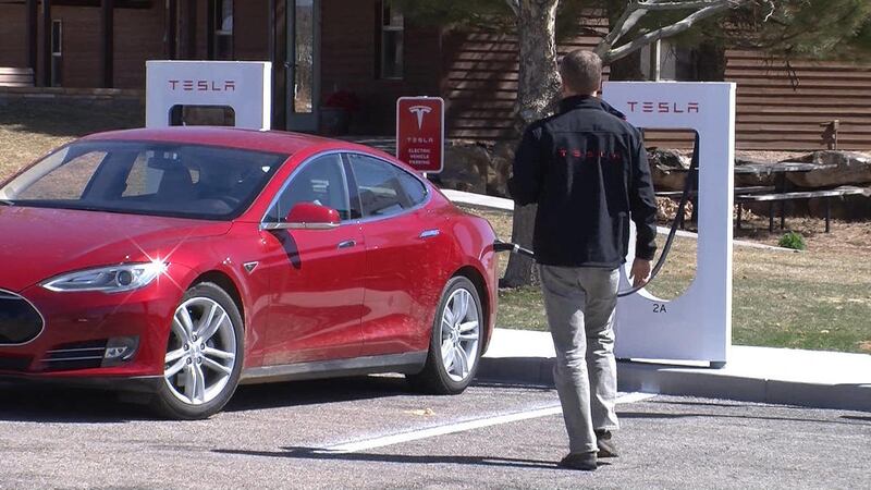 When Calwell charges his Tesla at his own solar-powered home in Durango, it takes all night with the standard Tesla equipment. But the company-installed equipment in the growing cross-country Tesla network employs fast-charging technology that can "fill up" Tesla batteries in an hour or so.
