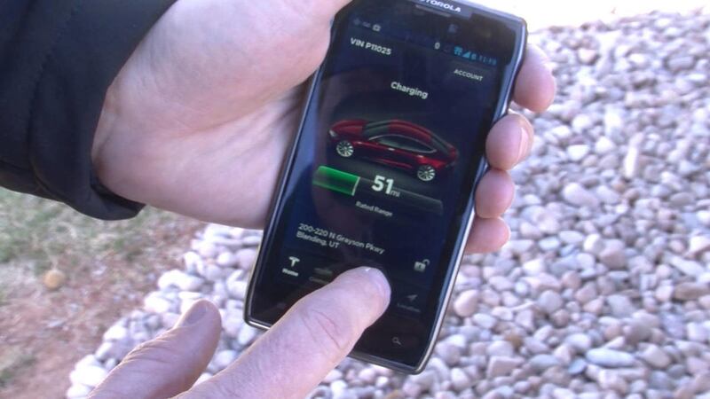 Calwell typically steps away for lunch while his batteries are charging. He can monitor the progress on a cellphone app. When he comes back from his lunch break, the Tesla is ready for another two or three hours of driving.