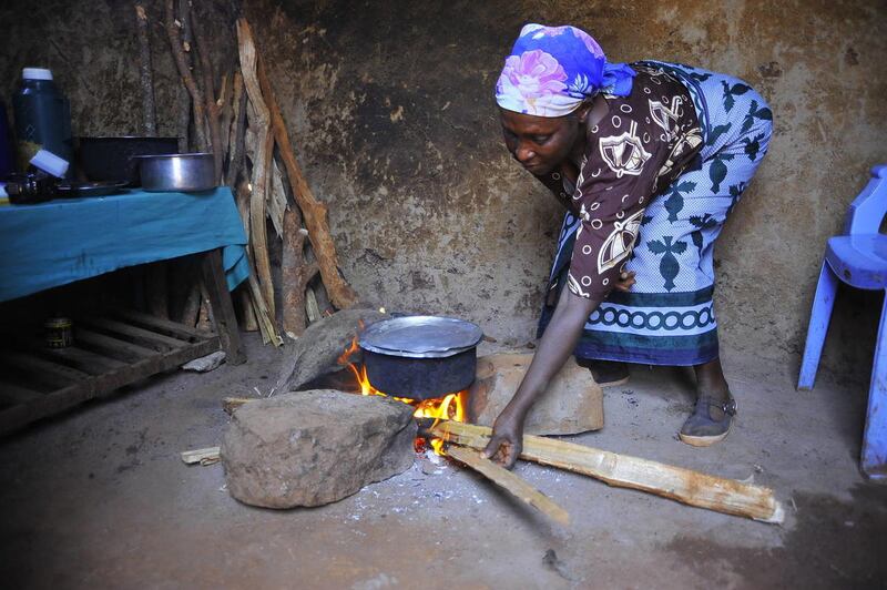 When they were done, Bernube wrapped up the wood pile — about 50 pounds' worth — and balanced it on her head. They took it back home where a simple three-stone fire with a metal griddle served as her stove and blackened her walls with soot. In two days, Bernube explained, she would go looking for firewood again.