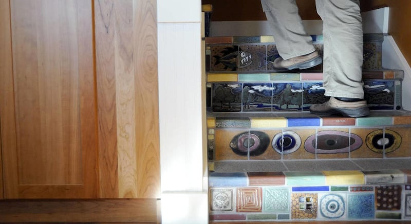And color and creation is what prevails at the Behunin house, the culmination of a 26-year pottery career. Five hundred square feet of hand-made tiles adorn the floors and walls, inside and out.