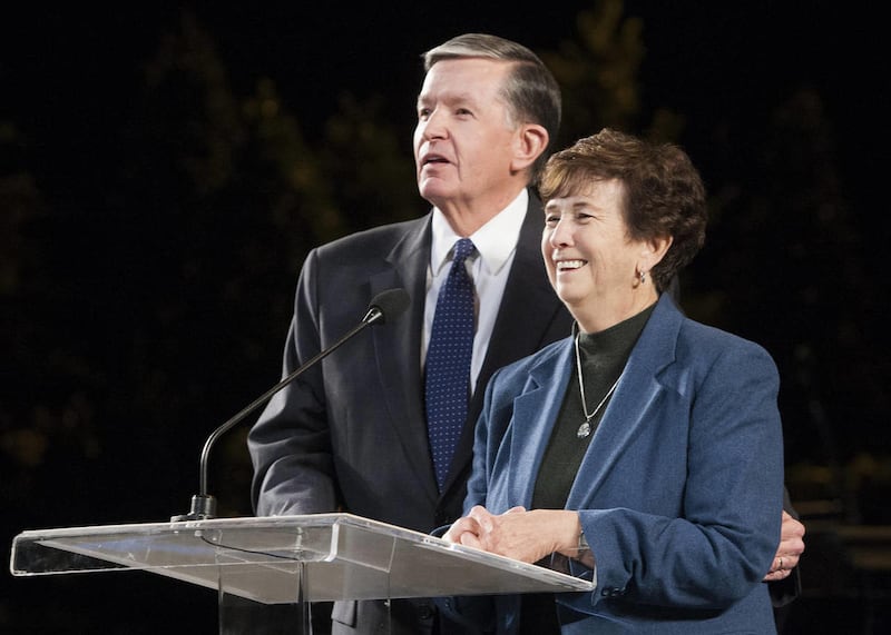 "Am I going to moon or lament over not being here? No, I'm not, but I'm going to glory that I've had the opportunity. I'm going to wish my successors well. I'll continue to cheer for our teams and our faculty and our students because you get to know them very well and love them. This is kind of like coming home from a mission.