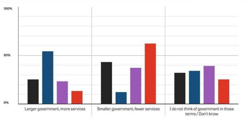According to their study, titled “State of the Center,” Third Way found that when it comes to matters of government involvement, moderates are most likely to answer the question “do you favor a larger government providing more services or a smaller government providing fewer services,” with “I do not think of government in those terms” or “I don’t know.”