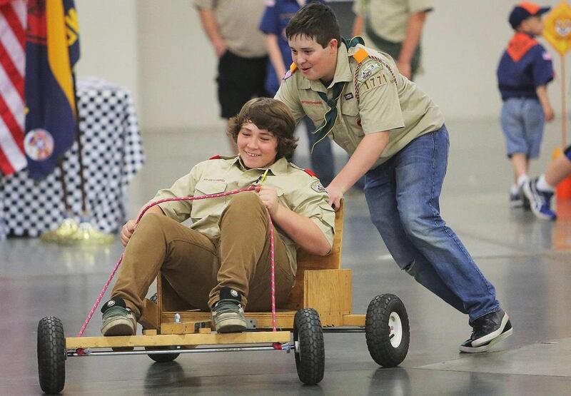 From a BB gun range to go-cart course, knot-tying stations and the traditional rain gutter regatta and pinewood derby races, a putting green to paper airplanes, handmade kazoos and other toys, to rock climbing and a number of trading posts with outdoor and survival equipment, the South Towne Expo Center was a Boy Scout's playland.