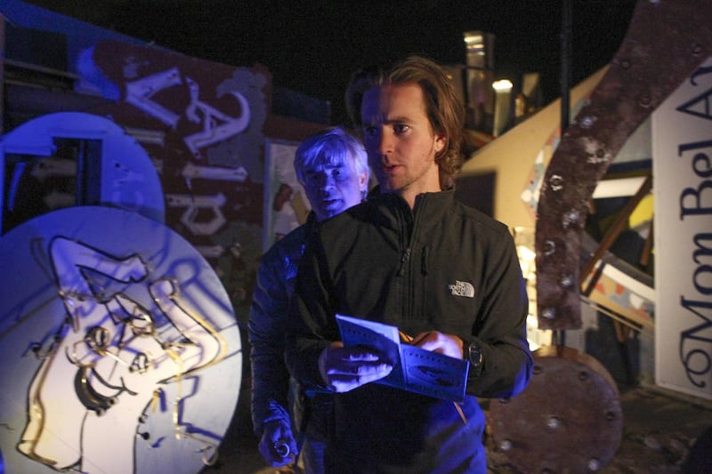 They were first to leave the road block challenge and go to the Neon Boneyard Park to for their next clue, which sent them to the Mirage hotel. There, they had to put in and count the lightbulbs in the “I” on the Mirage sign — some 30 stories up.