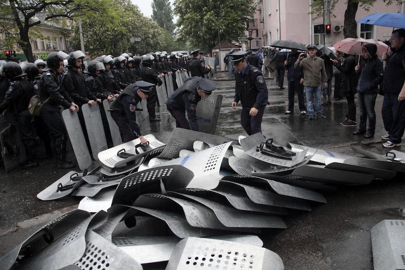 Hours later, however, the police bowed to a mob of several hundred pro-Russian demonstrators who attacked their headquarters, smashing doors, windows and security surveillance cameras. Shortly after some of them managed to break into an inner courtyard, police released the detainees, who were swept up by the cheering, rain-dampened crowd that had been chanting "Freedom!"