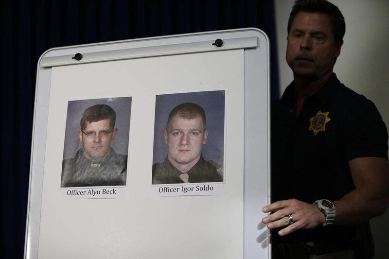 On Sunday, the two police officers were having lunch at a pizza buffet in an aging strip mall about 5 miles northeast of the Las Vegas Strip when the Millers fatally shot them. The attack at a CiCi's Pizza killed officers Alyn Beck, 41, and Igor Soldo, 31, both of whom were husbands and fathers of young children.