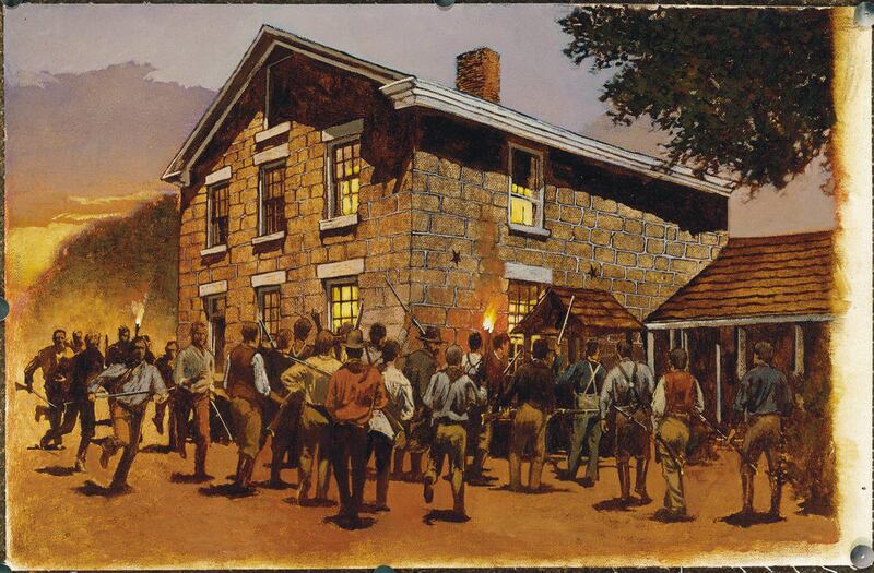 On June 27, 1844, a mob of between 100 and 200 armed men, their faces painted black to hide their identities, marched to the Carthage city jail.