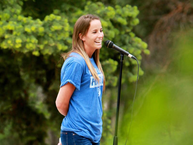 Lexi Eaton, a highly acclaimed athlete who competes on the women’s basketball and track teams, captivated the girls with her stories of prayer, scripture study and service. She chose five girls from the audience to join her on the stage and asked them about a deep passion they felt for some talent or activity. After conversing with each and causing the girls to laugh, she turned more solemn and asked how each would feel if the ability to participate in her passion was suddenly taken away?
