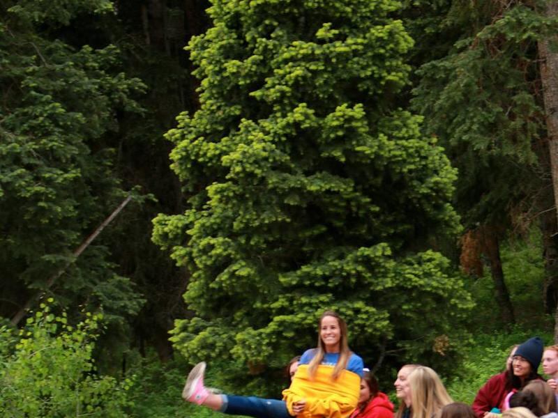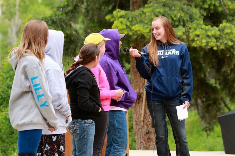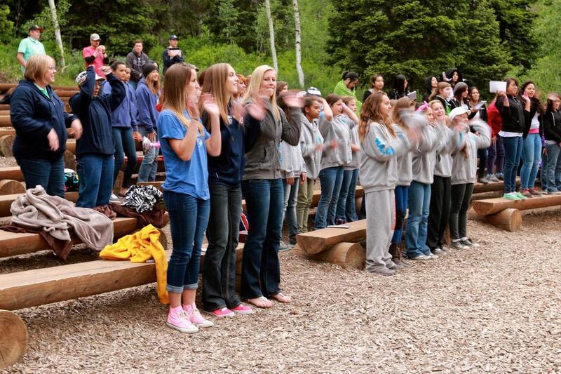 On another evening, high in the mountains at the Heber Valley Girls Camp, three female athletes walked from table to table during the dinner hour, visiting with several hundred young women from the Springville Dry Creek Stake. Soon after they led the girls up the hill to an amphitheater carved out in the trees where they joined in singing camp songs and then, one by one, shared their testimonies.