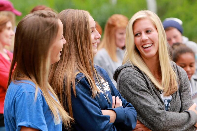 Surrounded by towering trees as evening temperatures cooled, the three athletes lingered long after the devotional to converse with the young women in small groups.