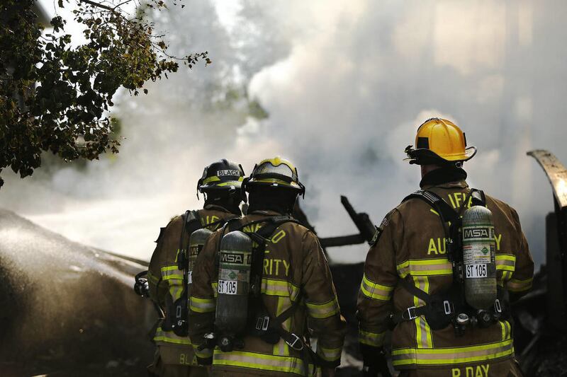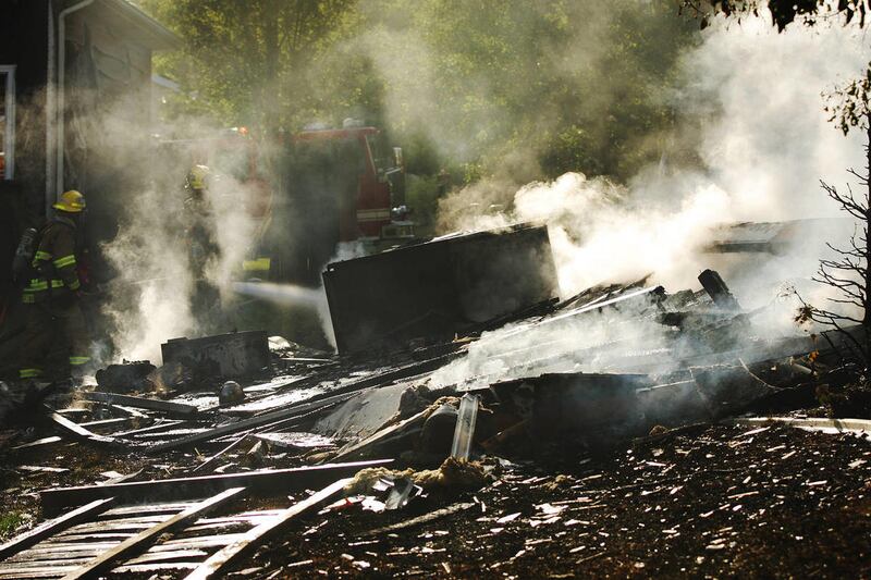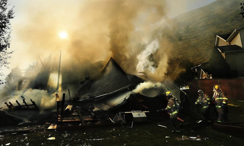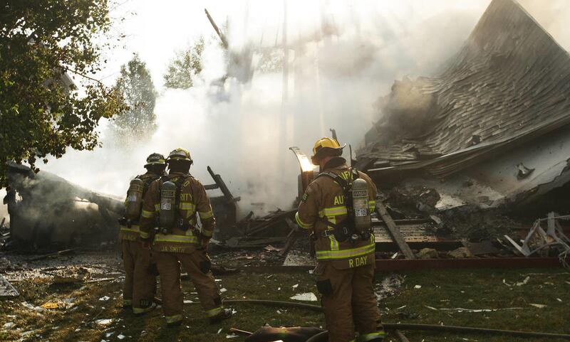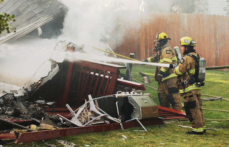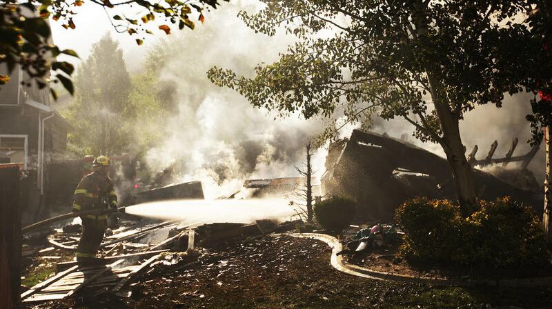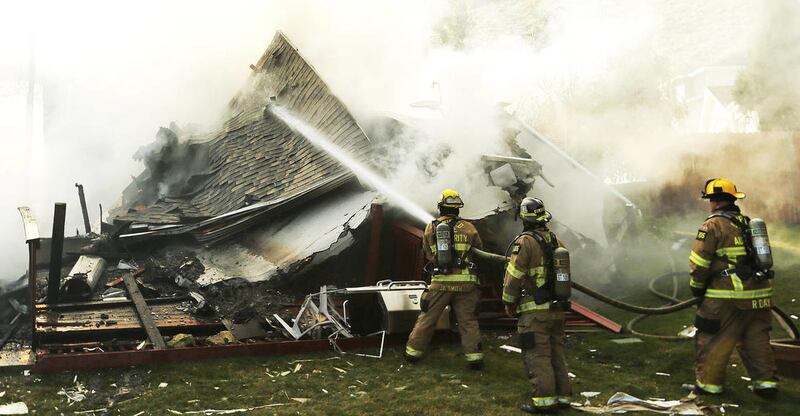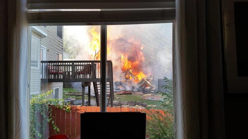 As Myrick looked outside, he saw a big plume of smoke over the burning home, the garage door in the middle of the driveway and then heard smaller blasts. The home was gone in just 10 minutes, he said.