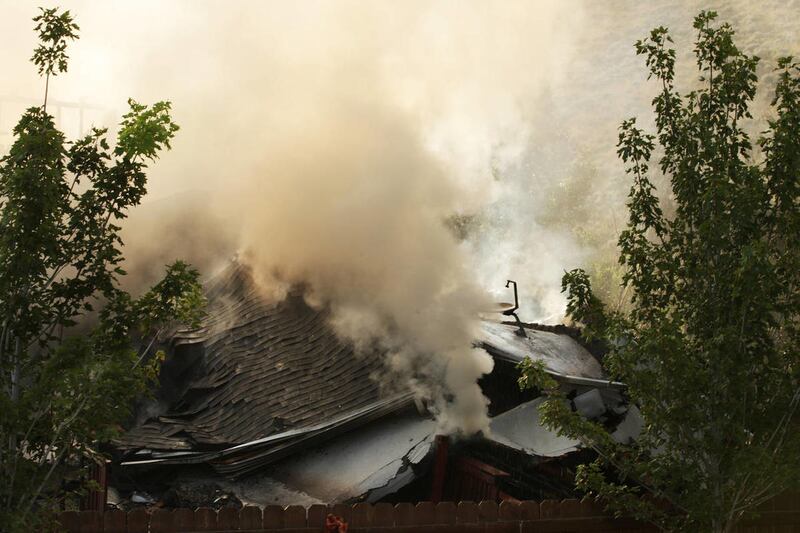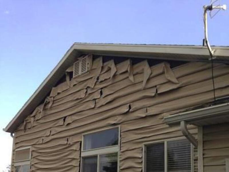 Insulation, siding, toys, and glass littered Miner's lawn. Siding on his home and other nearby houses melted from the heat. He said his windows also cracked, but he was more worried about his neighbor's life than his house, which he said is "just monetary."