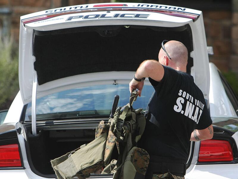 South Jordan police spokesman Sam Winkler said officers were notified shortly before 1 p.m. that Kenneth John Perna-Rutsky, 34, had brandished a handgun during a dispute with his fiance at the San Marino Apartments near 700 West and 9800 South.