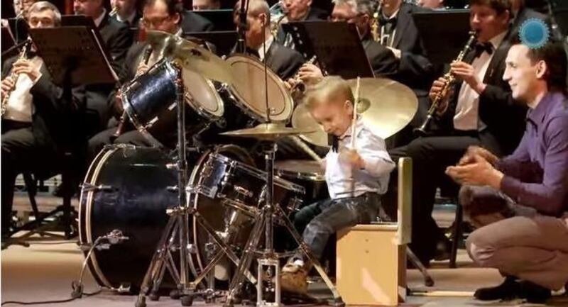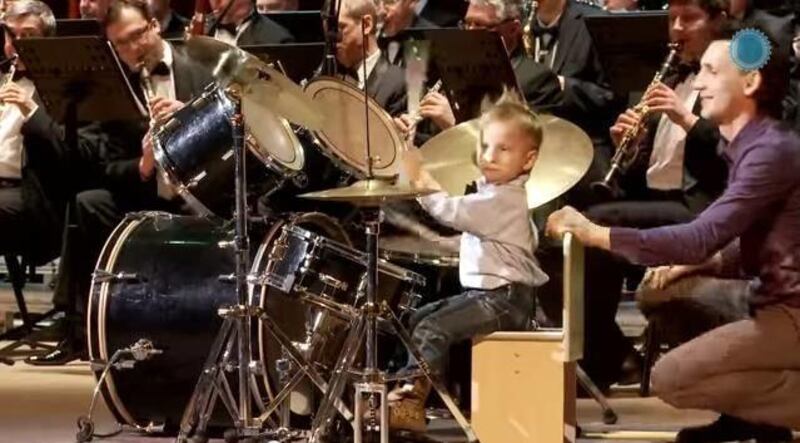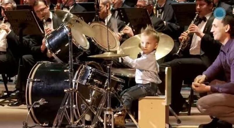In a YouTube video posted July 14, Lyonya performs Jacques Offenbach's "Orpheus in the Underworld" on the drums alongside an adult orchestra, the Daily Mail reported.