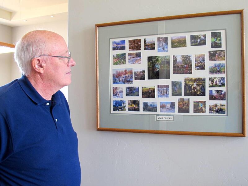 “Without Ellie,” he says, his eyes resting on the $30,000 paintings on the wall that have sold and are waiting for their new owners to come and get them, “it would not have happened.”