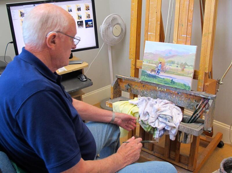“I’m chained to the easel,” he smiles. “It’s ingrained in me. I’ll probably keel over with a brush in my hands. I keep wondering if in the next life they’ll even need a painter.”