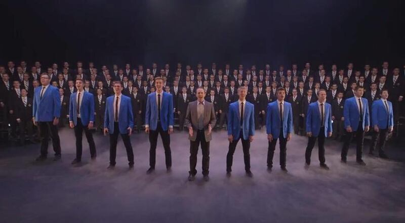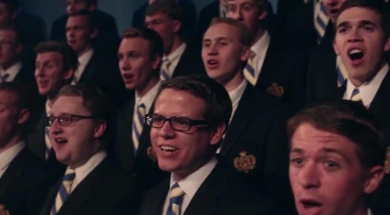Brigham Young University's Men's Chorus and a capella group Vocal Point collaborated to perform the Christian hymn "Nearer My God to Thee."