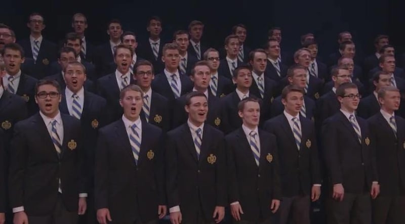 In a music video released Tuesday, the two groups perform a version of the song written by former Vocal Point director James Stevens. Stevens is also the lead soloist in the video.
