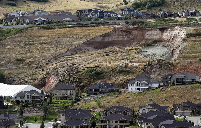 North Salt Lake Mayor Len Arave said the slide was largely caused by moisture permeating the soil and causing it to slide down across an underlying layer of bedrock.