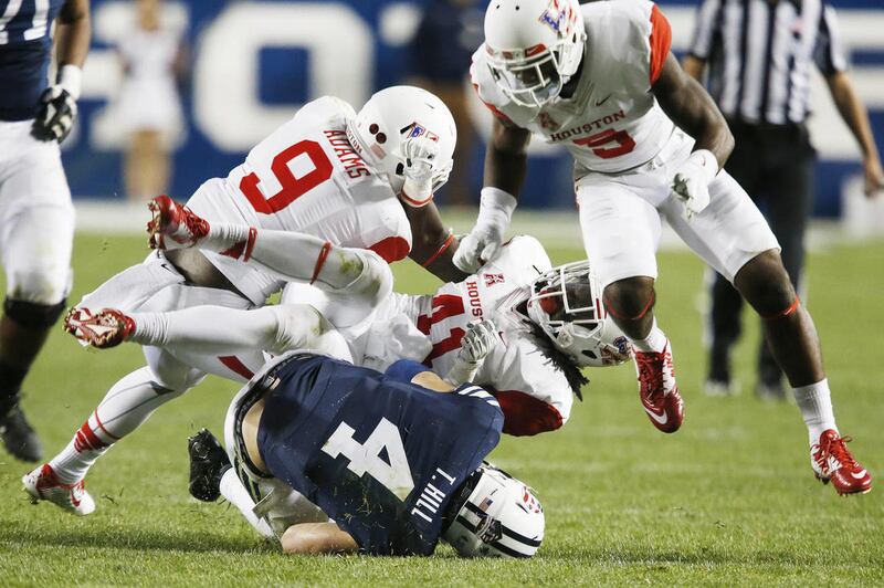 Houston quarterback John O’Korn completed 30 of 52 passes for 307 yards and three touchdowns.