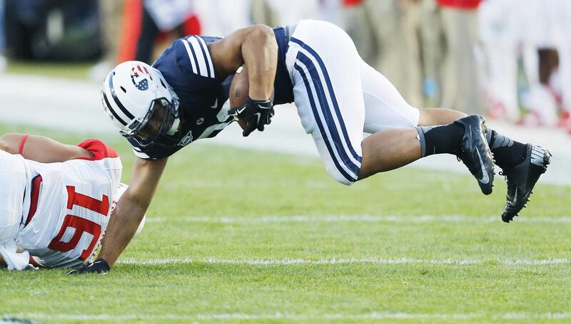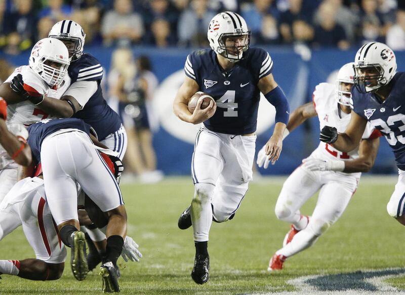 BYU quarterback Taysom Hill ran for 160 yards and a touchdown and completed 21 of 34 passes for 200 yards and a TD.