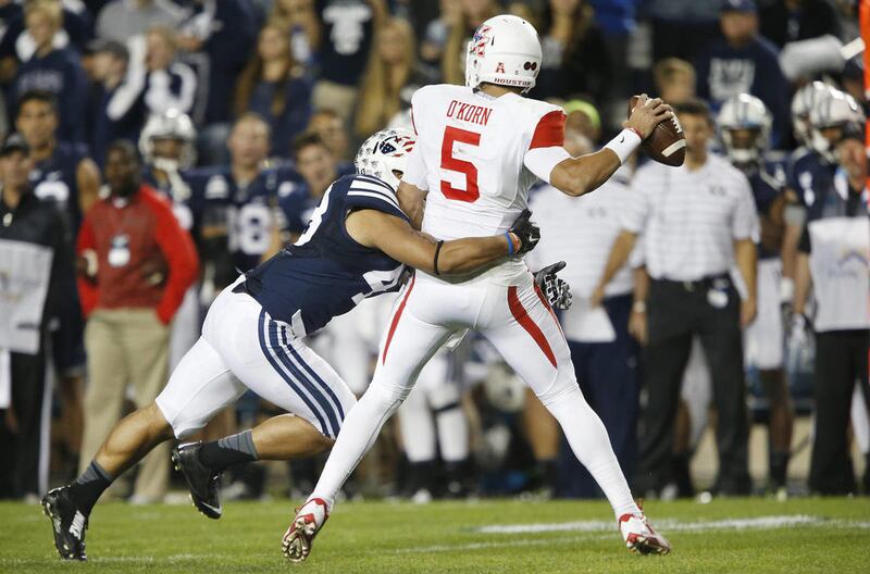 Houston clearly had the momentum going into the third quarter, and BYU’s first drive of the second half stalled. It ended when punter Scott Arellano’s fake punt on fourth-and-1 fell short.