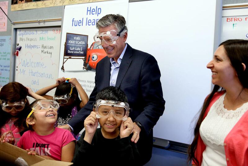 Huntsman, a member of Chevron's board of directors, shook the hands of the children in the class and talked to some of them about their career plans, including Grace Lugo, who came to the U.S. from Mexico just over a year ago.