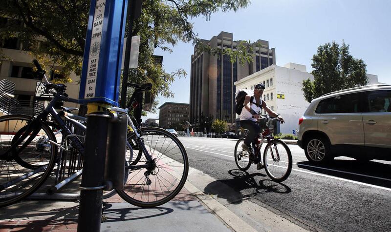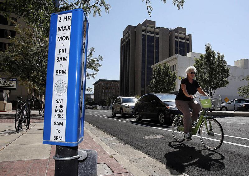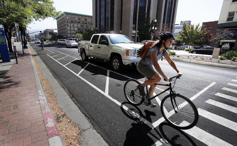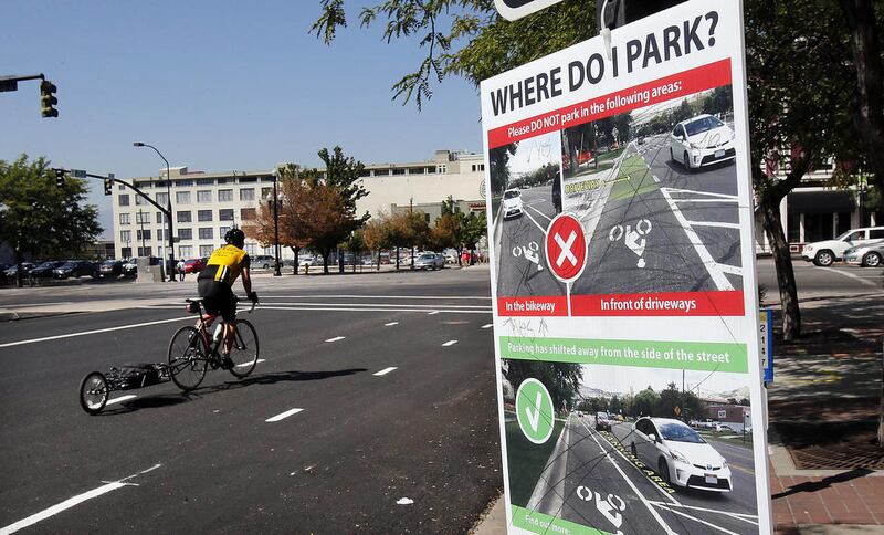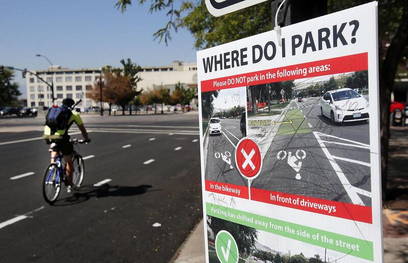 Salt Lake City is adding protected bike lanes on 300 South between 300 West and 600 East. The lanes are supposed to be safer for cyclists because they are closer to the curb, pushing parking spots a full lane away from the curb.