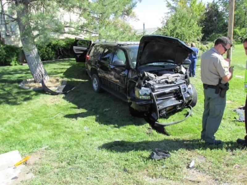 The Durango was pushed onto the front lawn of a residential property, Behm said, and the deputy was reportedly experiencing shoulder pain before he was transported to Davis Hospital and Medical Center.