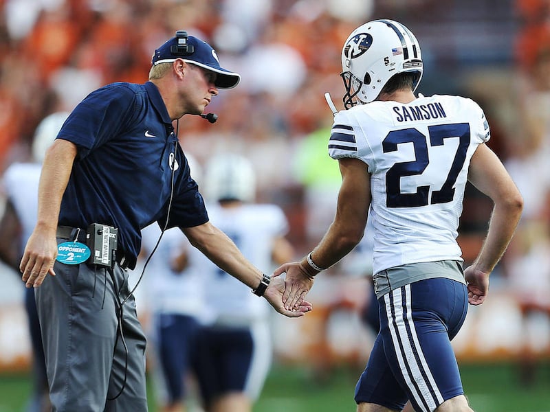 PROVO — In his BYU football debut at Connecticut on Aug. 29, place-kicker Trevor Samson’s first kick, a PAT, barely fluttered over the crossbar after an errant snap. Then he booted a couple of short kickoffs, and missed a 33-yard field goal.
