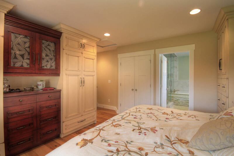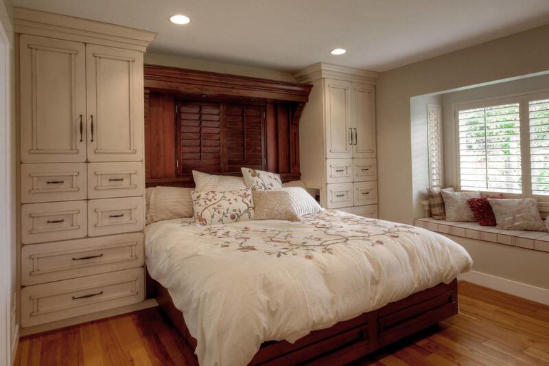 Some clients think they need a large room dedicated to storage to make their home more functional. While this is a luxury that few would turn down, creative storage can actually better meet their needs and can even make a space more interesting and beautiful. We recently designed a bedroom with beautiful built-in cabinetry around the headboard of the bed. It added much-needed storage space to the area where the items were being used, and also created a nice focal point for the room.