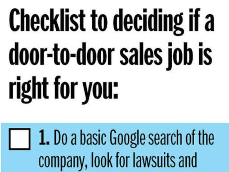 One consumer advocate takes it a step further: "I would tell (young people) not to take a door-to-door sales job at all," said Reid Maki, director of Child Labor Advocacy at the National Consumers League, which named traveling sales crews one of the five most dangerous jobs for young people in its annual report.