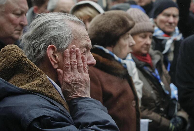 BRZEZINKA, Poland — Some 300 Holocaust survivors gathered with world leaders Tuesday under an enormous tent over the gate and railroad tracks that marked the last journey for more than a million people murdered by the Nazis at Auschwitz-Birkenau.