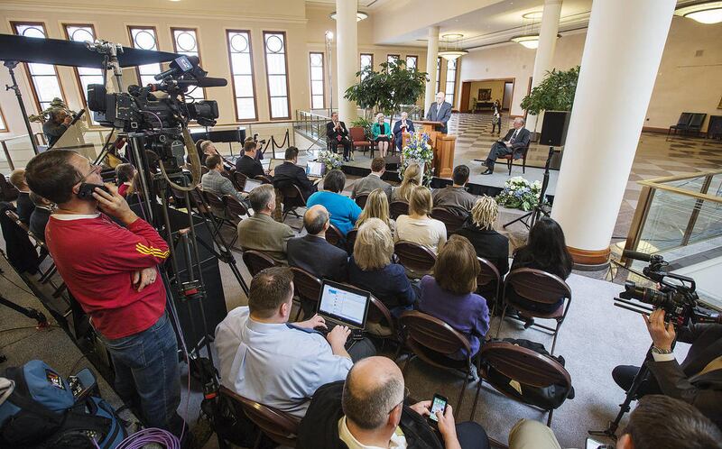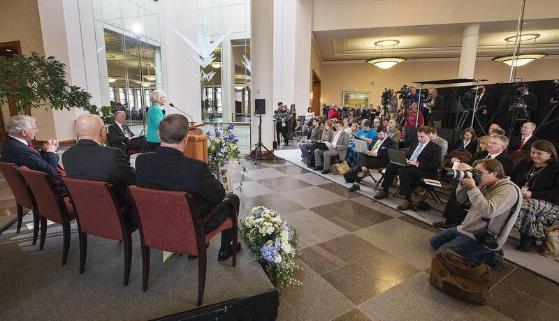 Elder Christofferson introduced the speakers at the briefing and noted the rare nature of Tuesday's new conference.