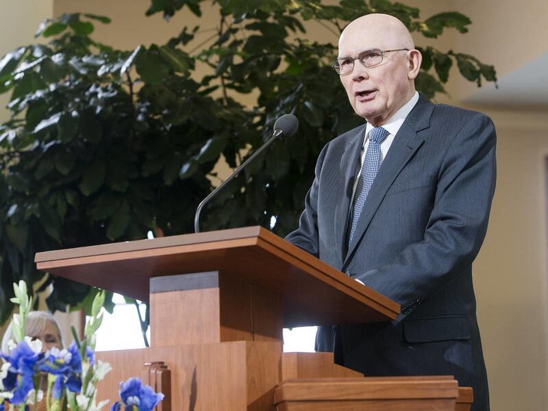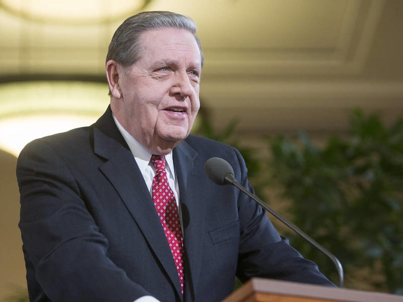 Tuesday's press conference echoed the talk Elder Oaks gave in October at the church's semiannual general conference, when he counseled Mormons not to "surrender our positions or our values," but to still "live peacefully with others who do not share our values or accept the teachings upon which they are based."