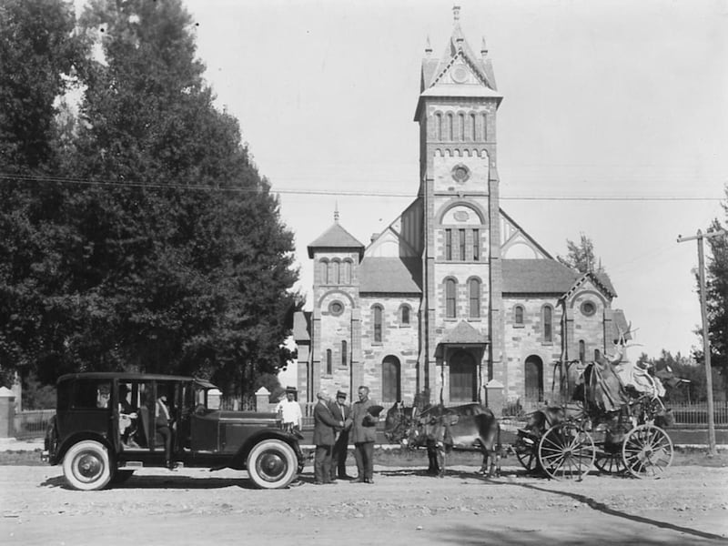 In 1896, "a faulty furnace belched flames" and "completely gutted" the Box Elder Stake Tabernacle, which was in Brigham City, Utah, leaving only its rock walls, Christensen said. It was rebuilt that year with the addition of red brick buttresses for additional wall strength and support. A different tower was added and the interior was reversed, with the speakers’ stand moved to its west end.