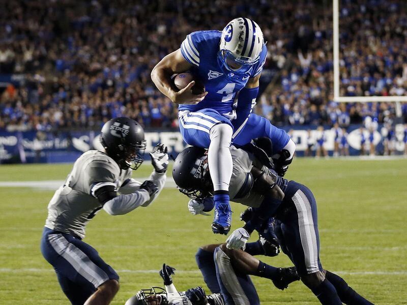 PROVO, Utah — One week before BYU opened its season against the University of Nebraska, Taysom Hill and his wife, Emily, sat contemplating the bruises and breaks in the backfield of his career and the wide-open field ahead.