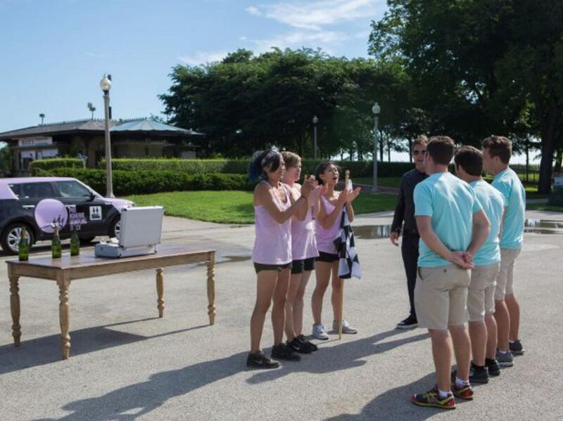 Pho-nomenal Dumplings breezed through its sales and moved on to the traditional "race" portion of the competition, driving toward the finish line at Chicago's Buckingham Fountain. Upon arrival, however, the show's host, Tyler Florence, informed the women that they had been selling their Greek dishes two blocks outside of the designated area, meaning that they'd have to go back and sell 50 additional meals within the proper boundaries.