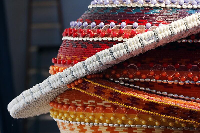 The blank ornaments were delivered to the artists at the end of September, Young said. Macy’s buys the candy, plastic foam sphere and other supplies for crafting the ornament, and then “we give a small stipend just for anything else that they want to add or to build out,” he said.