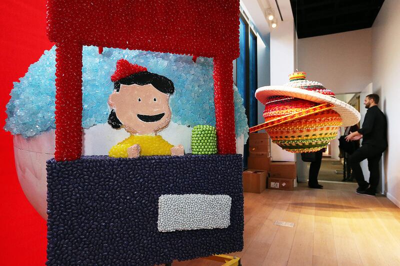 For the fourth year of the new candy windows, six local artists and teams have been creating their designs around the theme of cartoonist Charles Schulz’s “Peanuts” in honor of the comic strip’s 65th anniversary.