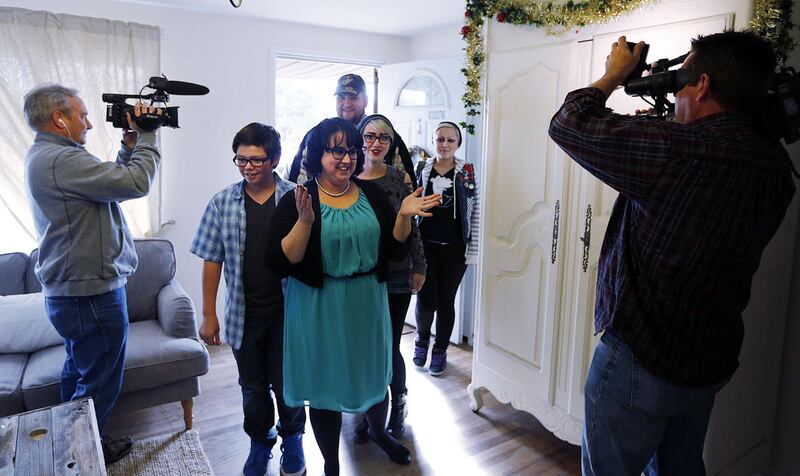 Toone's stepchildren, Alyssa Black, 15, and Caleb Black, 14, were impressed as they walked through the house for the first time after the renovation, saying "wow" and "this is so cool."