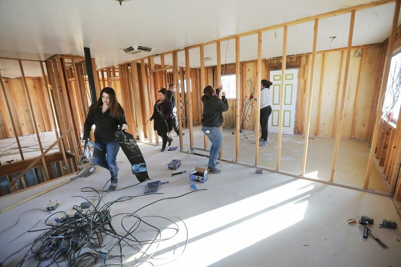 More than 30 volunteers, all Citywide employees and their families, stripped the house to its bones Friday.