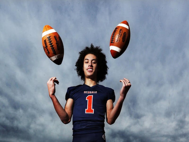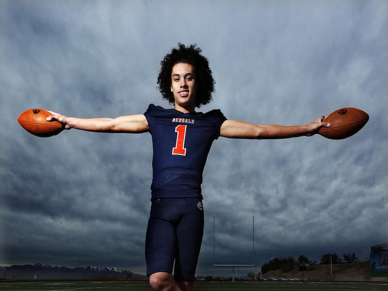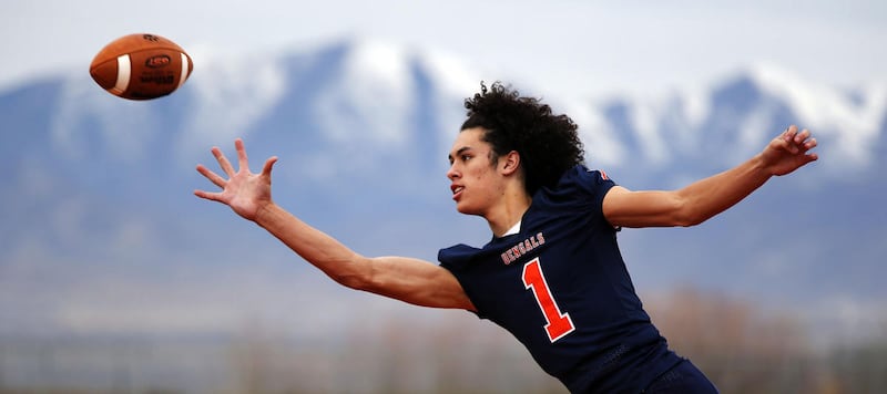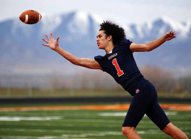 His final numbers include 139 receptions for a state-record 3,568 yards and 41 touchdowns while playing receiver during just his junior and senior seasons.