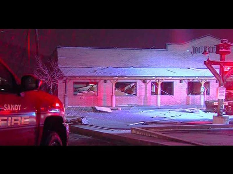The impact from the blast sent debris into State Street and caused a partial collapse of the roof, DeKorver said. Nearby Jordan High School and the LDS seminary building near the school were not damaged. DeKorver said the school's surveillance system recorded the explosion.