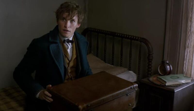 The trailer follows the story of Newt Scamander, played by Eddie Redmayne, a wizard from the 1920s who enters New York City with a suitcase of magical creatures. In the trailer, Porpentina Goldstein, played by Katherine Waterston, explains that some creatures have escaped after the suitcase was opened "just a smidge."